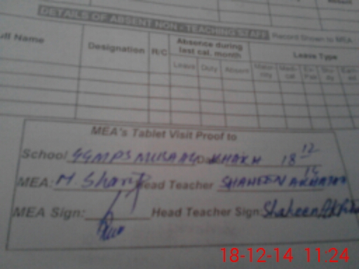 | Attendance Register | Head Teacher | MEA with School | Visit Proof |