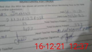 | Attendance Register | Head Teacher | MEA with School | Visit Proof |