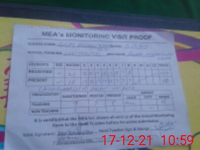 | Attendance Register | Head Teacher | MEA with School | Visit Proof |