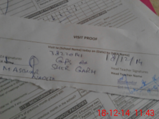 | Attendance Register | Head Teacher | MEA with School | Visit Proof |
