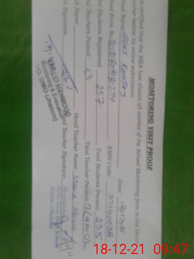 | Certified that this School was Inspected by the Undersigned MEA/DMO Today and the Information Stated Above is as Per Record. | |||||