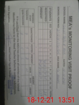 | Attendance Register | Head Teacher | MEA with School | Visit Proof |