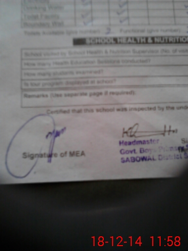 | Certified that this School was Inspected by the Undersigned MEA/DMO Today and the Information Stated Above is as Per Record. | |||||