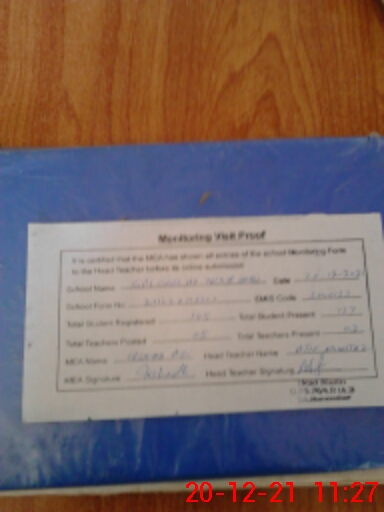 | Attendance Register | Head Teacher | MEA with School | Visit Proof |