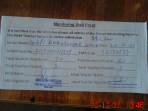 | EMIS Code: 36130534 | Name of School: GGPS BAKHTAWER WALA | |||