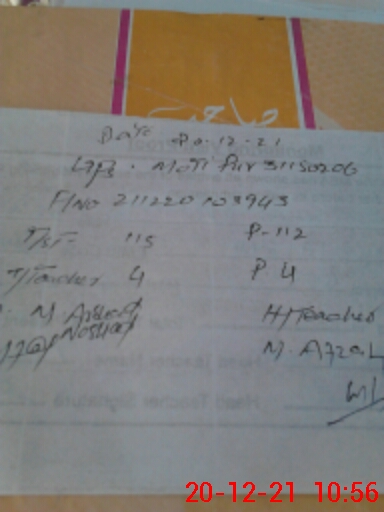 | Name: Mu**** Iq**** Kh**** Designation: (School Headmaster's/Headmistress's) PST Phone/Cell Number: 03**** |