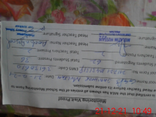 | Certified that this School was Inspected by the Undersigned MEA/DMO Today and the Information Stated Above is as Per Record. | |||||