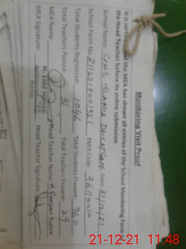| Certified that this School was Inspected by the Undersigned MEA/DMO Today and the Information Stated Above is as Per Record. | |||||