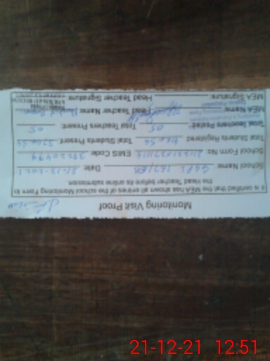 | Certified that this School was Inspected by the Undersigned MEA/DMO Today and the Information Stated Above is as Per Record. | |||||
