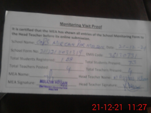 | EMIS Code: 36130731 | Name of School: GPS MIRZAN PUR | |||