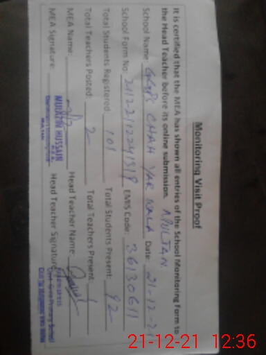 | EMIS Code: 36130611 | Name of School: GGPS CHAH YAR WALA | |||