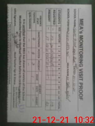 | Monitoring Date: 21-12-2021 | Start Time: 21-12-2021 09:53 AM | End Time: 21-12-2021 10:34 AM | Name of MEA: M.Ta**** Iq**** (S**** | |