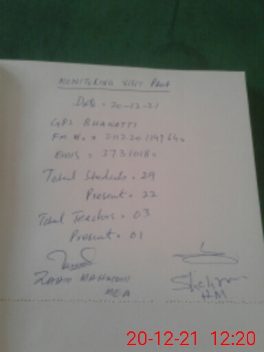 | Monitoring Date: 20-12-2021 | Start Time: 20-12-2021 11:48 AM | End Time: 20-12-2021 12:22 PM | Name of MEA: Za**** Me**** | |