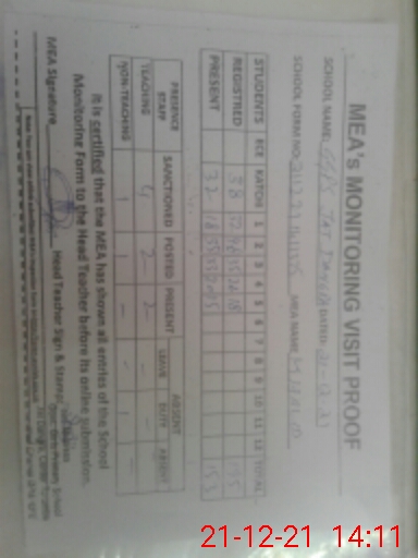 | Attendance Register | Head Teacher | MEA with School | Visit Proof |
