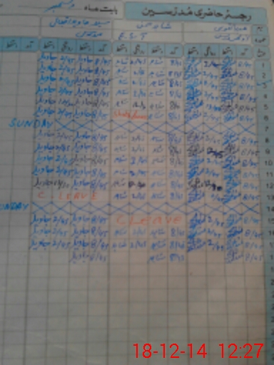| CNIC | Full Name | Designation | R/C | Absence During Last Calender Month |
