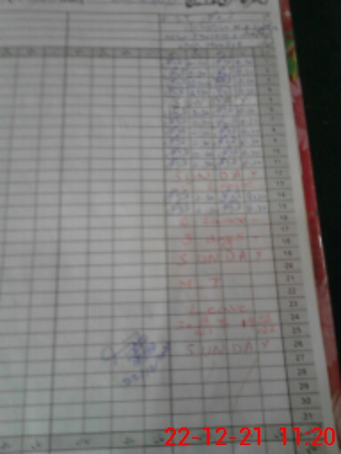 | CNIC | Full Name | Designation | R/C | Absence During Last Calender Month |