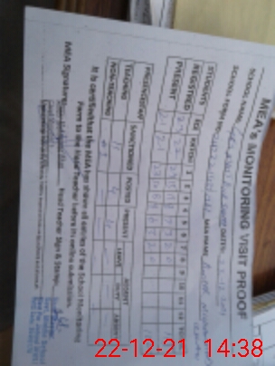 | Attendance Register | Head Teacher | MEA with School | Visit Proof |