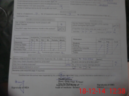 | School Visited by School Health & Nutrition Supervisor (No. of Visits) | 1 | Name1: | M SALEEM | Name2: | O |