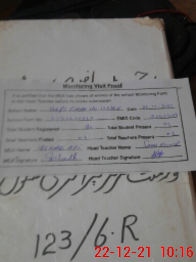| Certified that this School was Inspected by the Undersigned MEA/DMO Today and the Information Stated Above is as Per Record. | |||||