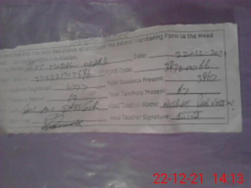 | Attendance Register | Head Teacher | MEA with School | Visit Proof |