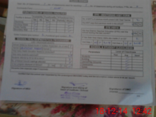 | Monitoring Date: 18-12-2014 | Start Time: 18-12-2014 12:31 PM | End Time: 18-12-2014 12:44 PM | Name of MEA: Mu**** am**** Ak**** | |