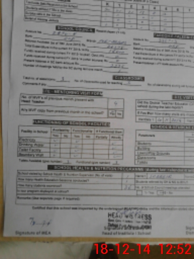 | School Visited by School Health & Nutrition Supervisor (No. of Visits) | 1 | Name1: | Shabbir | Name2: | O |