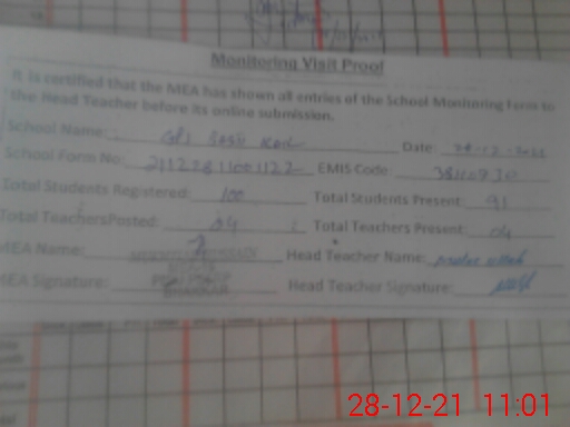 | Certified that this School was Inspected by the Undersigned MEA/DMO Today and the Information Stated Above is as Per Record. | |||||