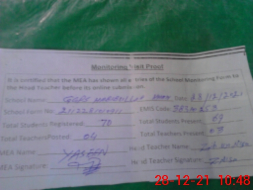| Attendance Register | Head Teacher | MEA with School | Visit Proof |