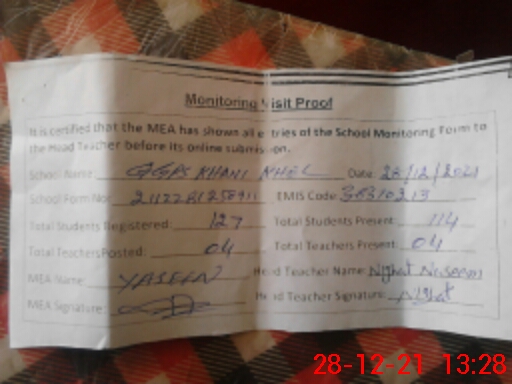 | EMIS Code: 38310213 | Name of School: GGPS KHANI KHEL | |||