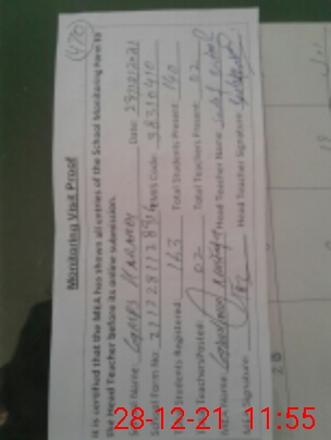 | Attendance Register | Head Teacher | MEA with School | Visit Proof |