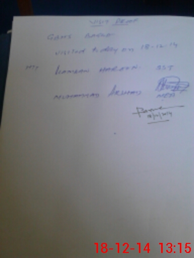 | School Visited by School Health & Nutrition Supervisor (No. of Visits) | Name1: | ASAD ABBAS | Name2: | NIL | |