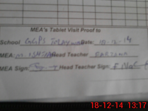 | Attendance Register | Head Teacher | MEA with School | Visit Proof |