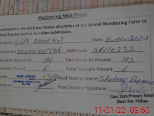 | EMIS Code: 36110232 | Name of School: GGES DHOOR KOT SURAJ MIANI MULTAN | |||