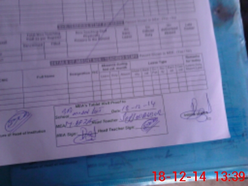 | Attendance Register | Head Teacher | MEA with School | Visit Proof |