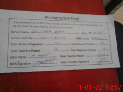 | EMIS Code: 31150050 | Name of School: GPS GIRIA ABAD | |||