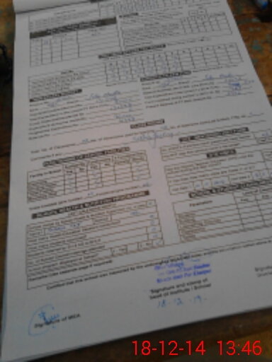 | Monitoring Date: 18-12-2014 | Start Time: 18-12-2014 01:13 PM | End Time: 18-12-2014 01:47 PM | Name of MEA: Za**** Hu**** | |