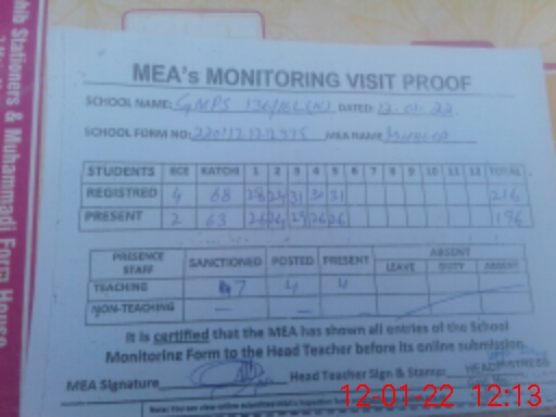 | EMIS Code: 36430289 | Name of School: GMPS 136/16-L NORTH, P/O 135/16-L STUNTZABAD, MIAN CHANNU | |||