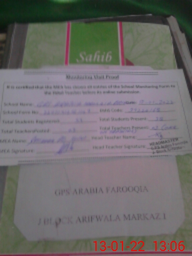 | EMIS Code: 39220168 | Name of School: GPS ARABIA FAROOQIA ARIFWALA J BLOCK | |||