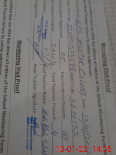 | Certified that this School was Inspected by the Undersigned MEA/DMO Today and the Information Stated Above is as Per Record. | |||||