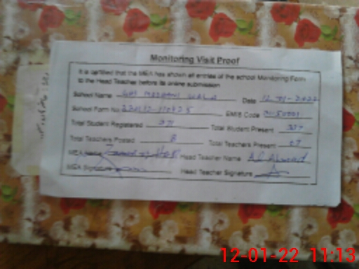 | Certified that this School was Inspected by the Undersigned MEA/DMO Today and the Information Stated Above is as Per Record. | |||||