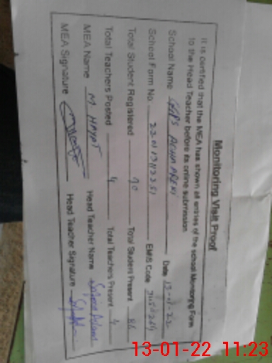 | Certified that this School was Inspected by the Undersigned MEA/DMO Today and the Information Stated Above is as Per Record. | |||||