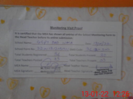 | EMIS Code: 36120300 | Name of School: GGPS DAD WALA SHUJABAD DISTT. MULTAN | |||
