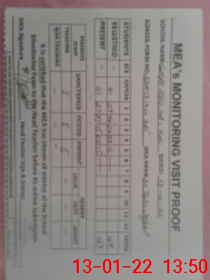 | Monitoring Date: 13-01-2022 | Start Time: 13-01-2022 01:10 PM | End Time: 13-01-2022 01:50 PM | Name of MEA: M.Ta**** Iq**** (S**** | |