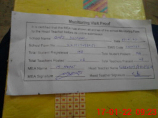 | Attendance Register | Head Teacher | MEA with School | Visit Proof |