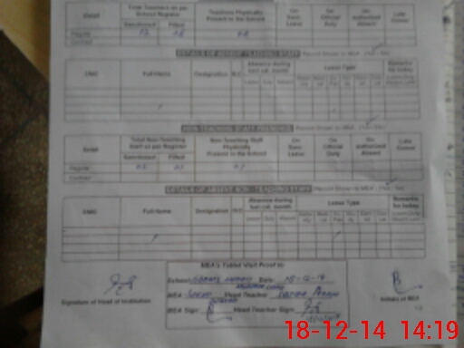 | Attendance Register | Head Teacher | MEA with School | Visit Proof |