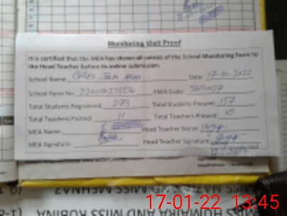| Attendance Register | Head Teacher | MEA with School | Visit Proof |