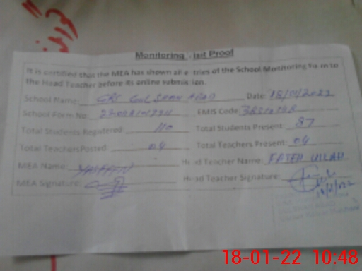 | EMIS Code: 38310148 | Name of School: GPS GULSHAN ABAD PO KAMAR MUSHANI | |||