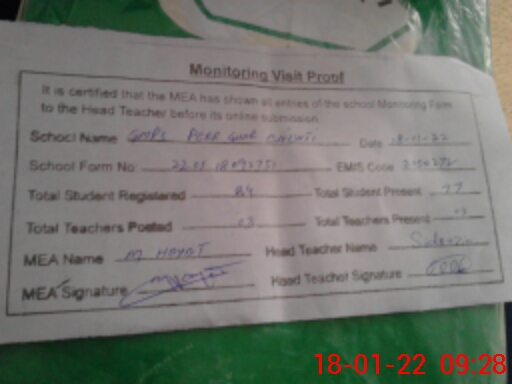 | EMIS Code: 31150272 | Name of School: GMPS PIR GHAR CHISHTI | |||