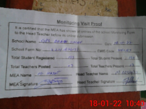 | Certified that this School was Inspected by the Undersigned MEA/DMO Today and the Information Stated Above is as Per Record. | |||||