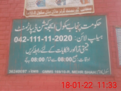 | EMIS Code: 36420097 | Name of School: GmES 169/10-R, KHANEWAL | |||